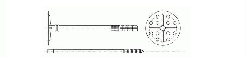 Дюбель для теплоизоляции с пластиковым стержнем предназначен для крепления легких теплоизоляционных материалов без дополнительной фиксации дюбелем, к полнотелым основаниям, таким как кирпич, бетон, природный камень, пенобетон и т.п. (не подходит для крепления в основаниях, содержащих полости). Поверх дюбеля можно класть легкую штукатурку.