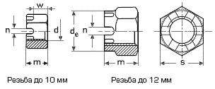 Представленный в продаже крепеж Гайка корончатая DIN 935 М10 изготовлен из качественной стали марки 3; 10; 20 ;09Г2С согласно требованиям 5918. Гайка имеет следующие преимущества: стойкость к коррозии, прочность класса 4,8; 5,8; и геометрическую точность, соответствующую уровню В. Поле допуска гаечной резьбы составляет 6Н; 7Н для гаек по ТУ 14-4-1754-94.
