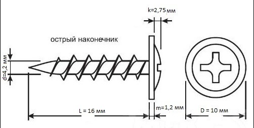 Применяются для крепления листов металла до 2 мм (наконечник- сверло) и до 0,9 мм (наконечник- острие) Технические характеристики