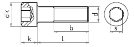 Таблица размеров винтов (болтов) DIN 912 (ISO 4762) с внутренним шестигранником в мм (крупная резьба)